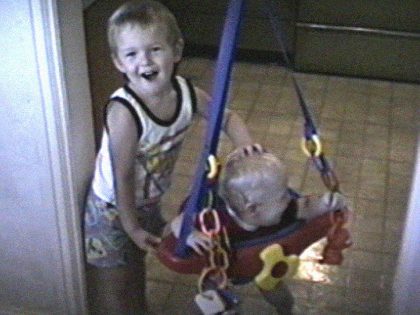Casey in his bouncing swing